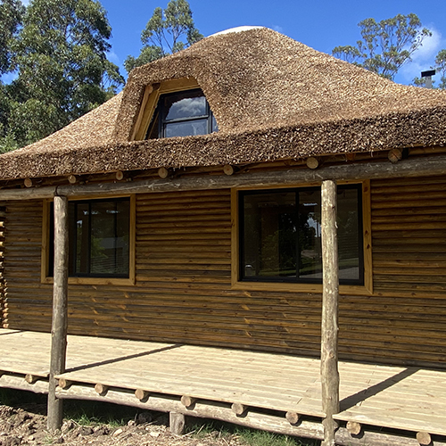 - Paredes exteriores en tronco de 9 cm. de diámetro tratado.