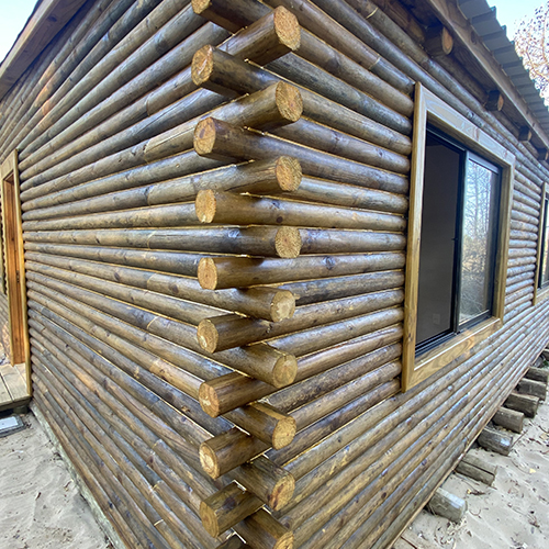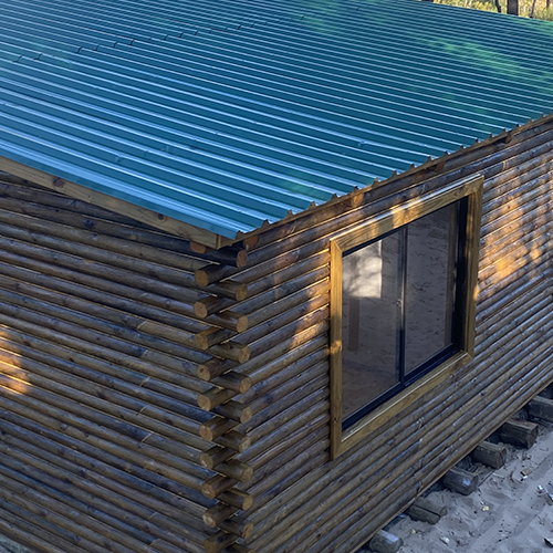 - Paredes exteriores en tronco de 9 cm. de diámetro tratado.