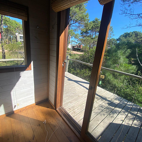 - Puerta exterior maciza en madera de eucalipto.